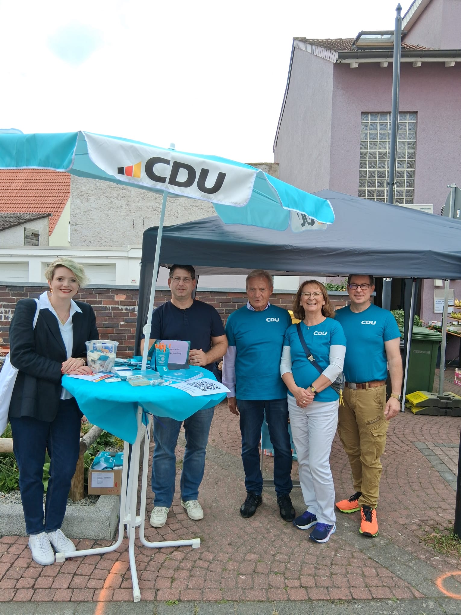 Trotz regnerischen Wetters erfreute sich der Stand der CDU beim diesjährigen Limesmarkt großer Resonanz. Zahlreiche Bürgerinnen und Bürger nutzten die Gelegenheit, mit den Vertreterinnen und Vertretern der Partei ins Gespräch zu kommen.